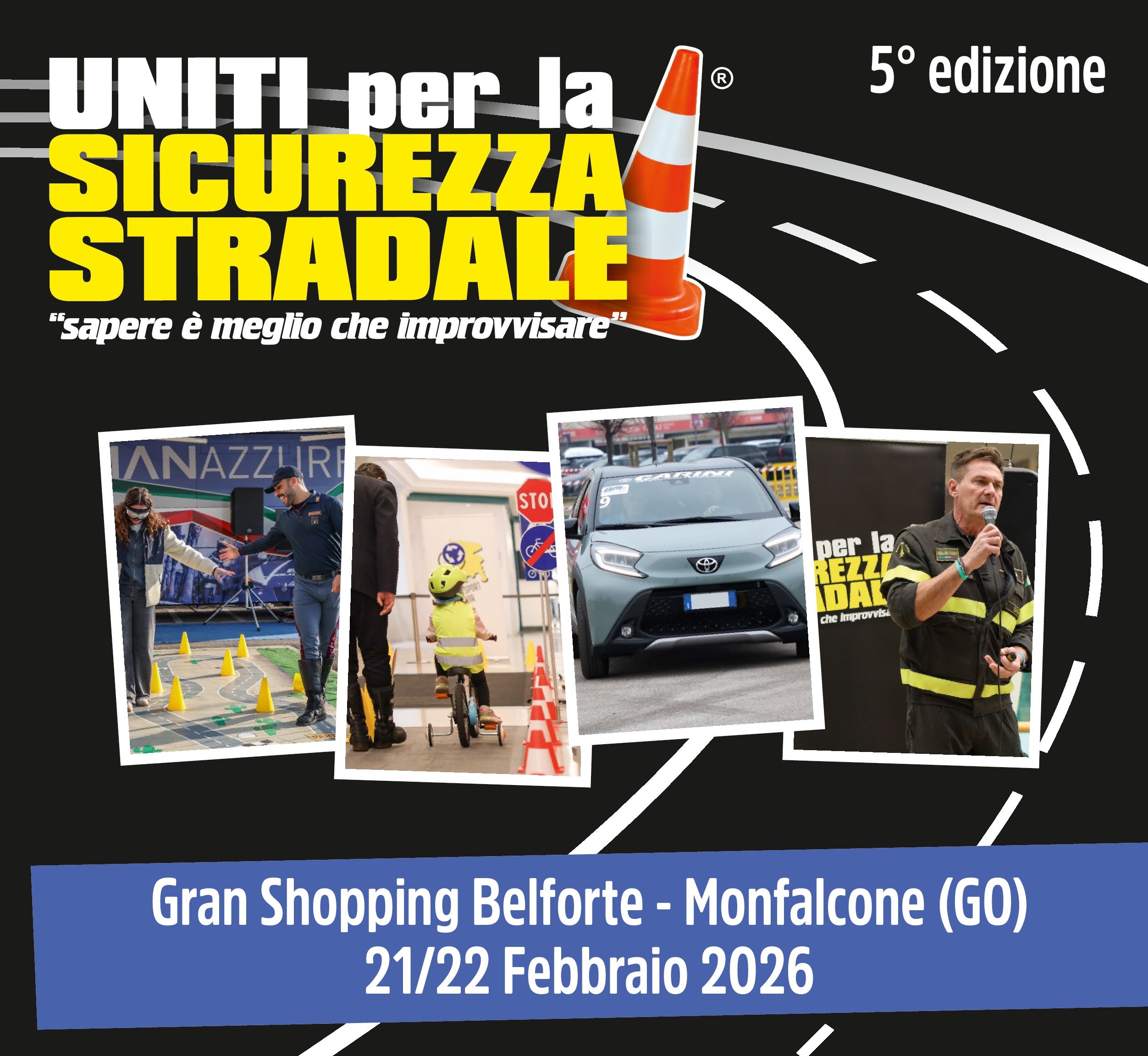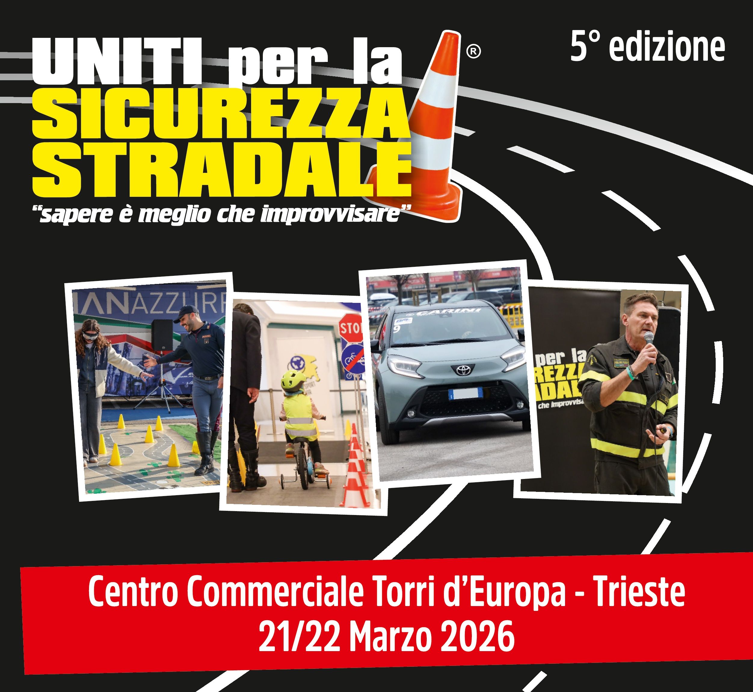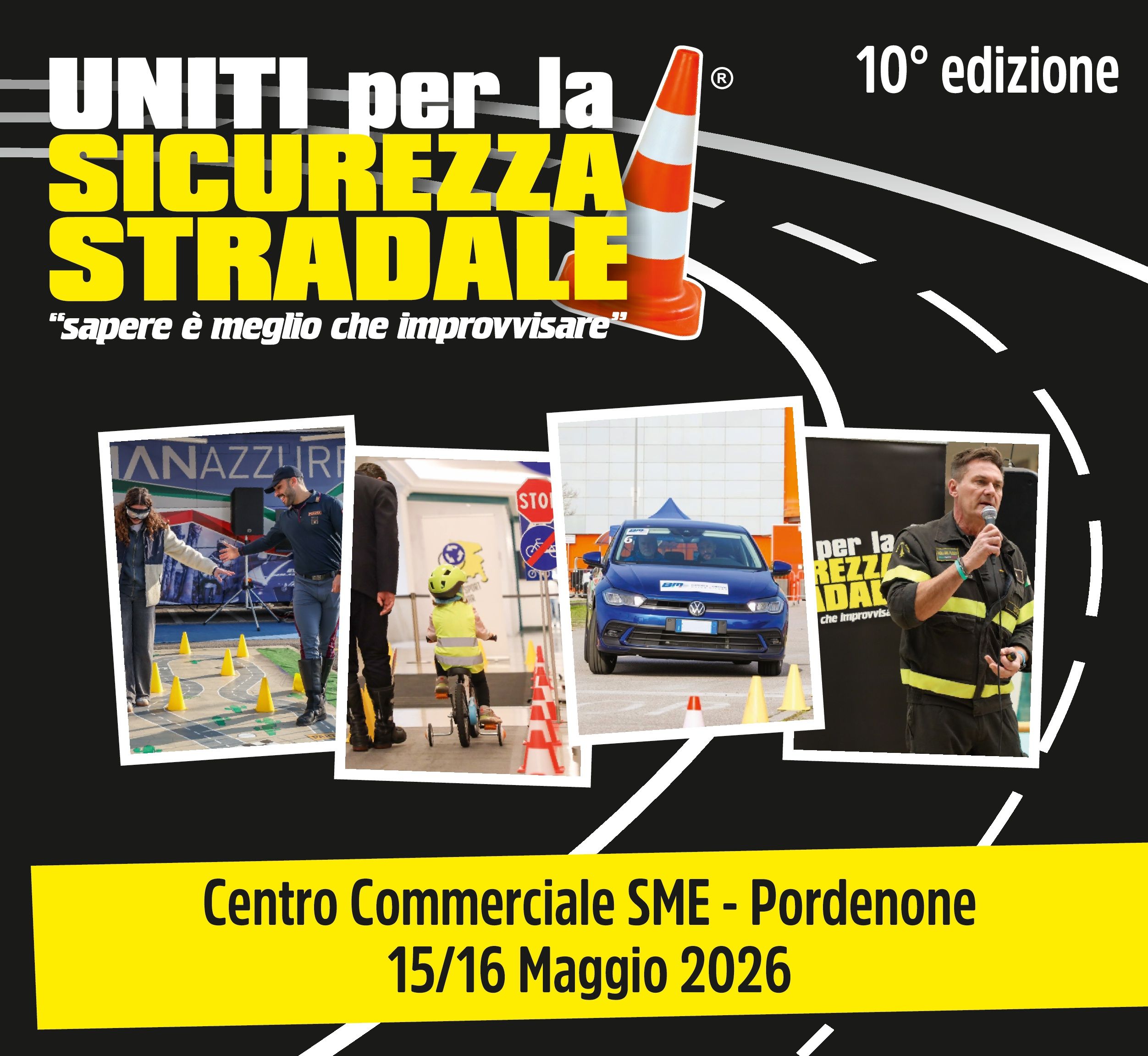 Iniziativa che unisce il settore pubblico e quello privato per la sensibilizzazione alla sicurezza stradale, tramite incontri a tema sulla prevenzione, esercitazioni pratiche e gratuite di Guida Sicura Introduttiva automobilistica, allestimento di un Campo Scuola Bike per bambini ed esposizione di prodotti a favore della sicurezza stradale e della mobilità sostenibile, incontri di educazione stradale a cura delle Forze di Polizia